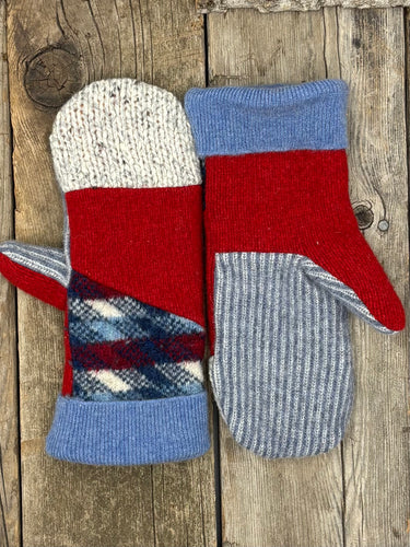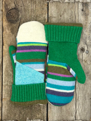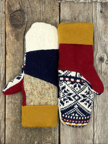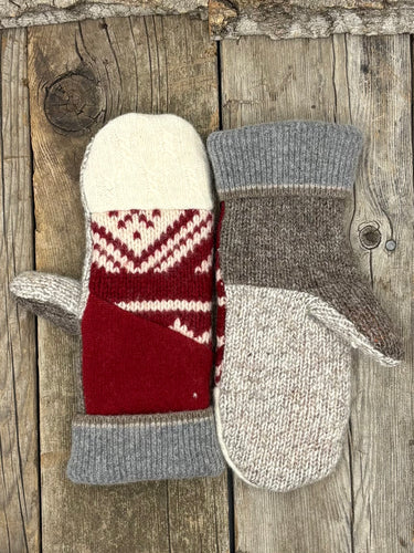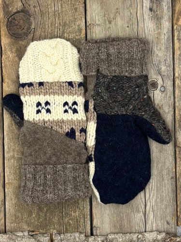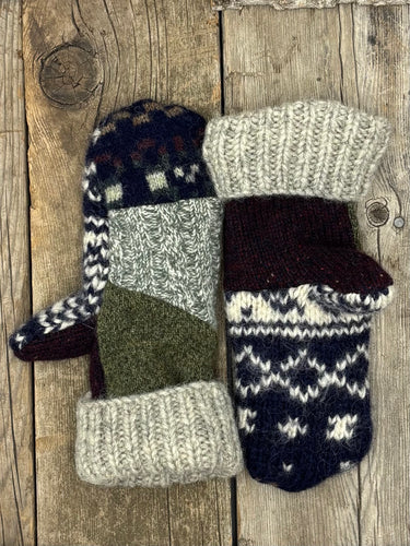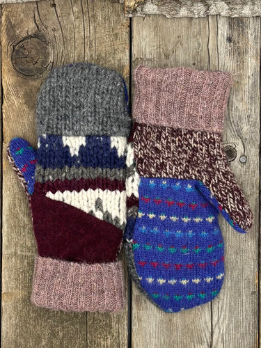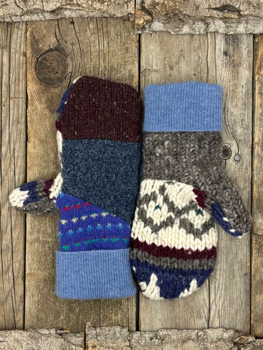 If you plan to be outside chilling' with your 'snowmies' then you're going to need to bundle up! Crafted from wool sweaters and insulated with polar fleece, our mittens will keep you warm and looking good.
