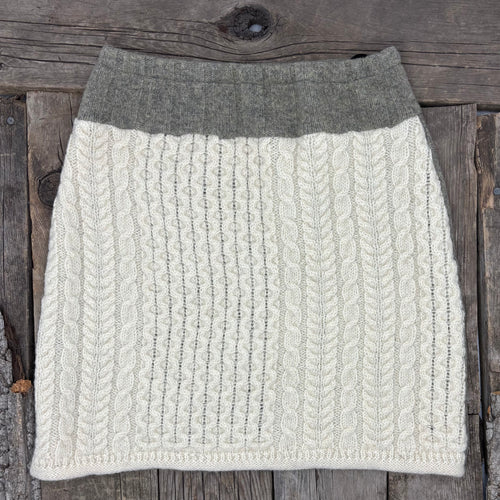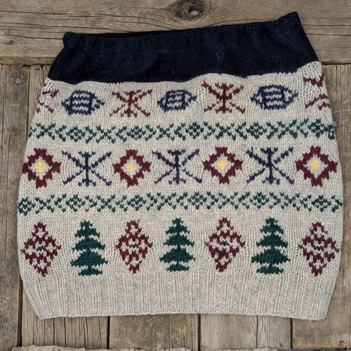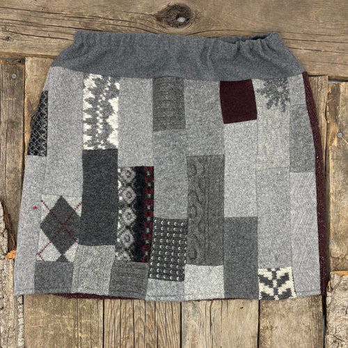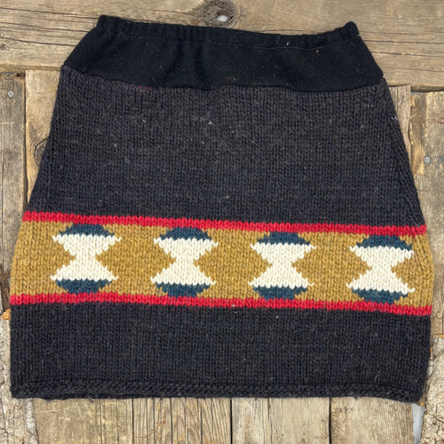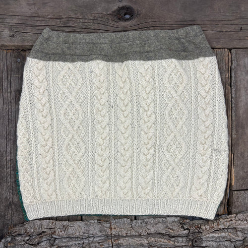 We like to think of them as a layer.... over jeans or leggings on your way to the gym or out for a walk, these skirts wrap around you just like a warm blanket. We turn two wool sweaters and a waistband into a cozy wrap that makes all shapes and sizes look good and stay warm.