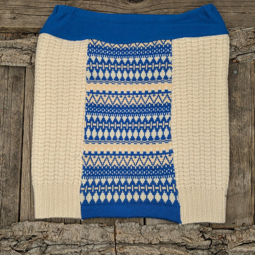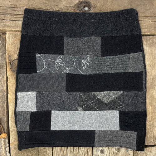 We like to think of them as a layer.... over jeans or leggings on your way to the gym or out for a walk, these skirts wrap around you just like a warm blanket. We turn two wool sweaters and a waistband into a cozy wrap that makes all shapes and sizes look good and stay warm.