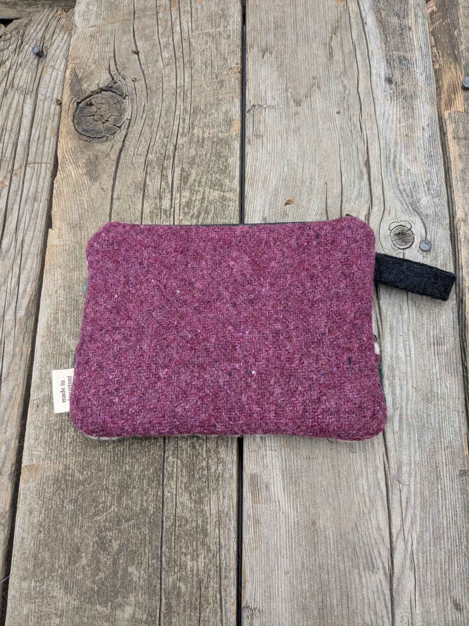 This new zippered case, the Birch, is usually made using a thick wool sweater on one side and a wool blanket on the other. The lining is a sturdy canvas with a zippered top closure.