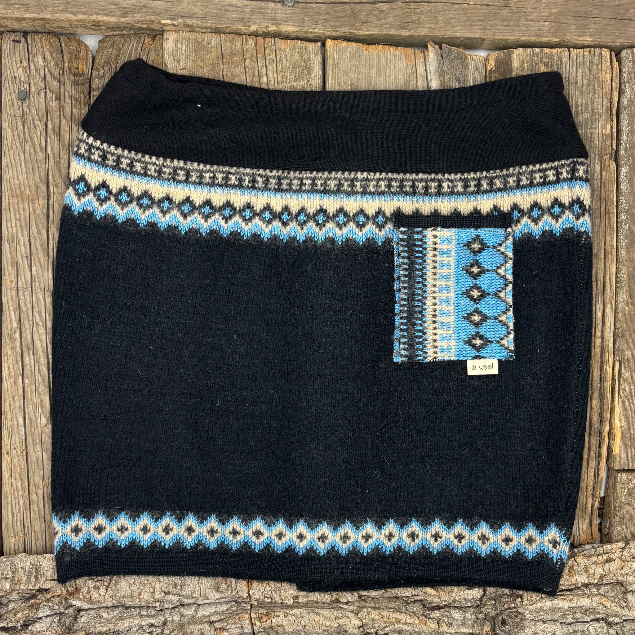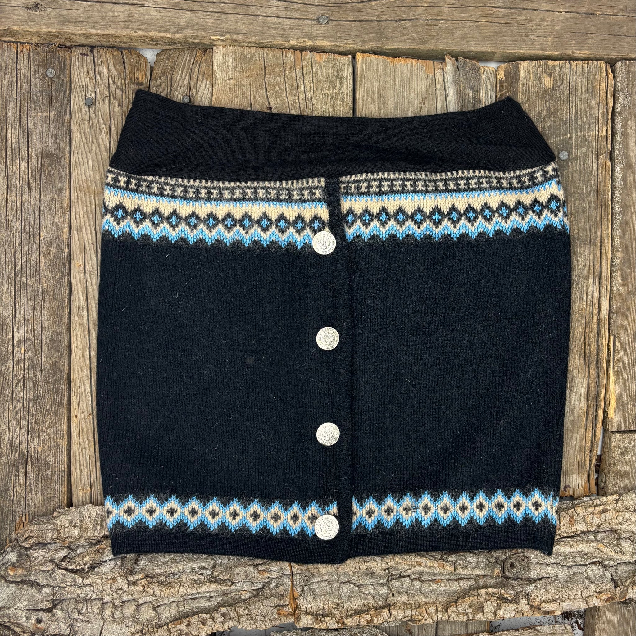 A felted vintage Norwegian style sweater with pewter buttons and a handy patch pocket on the back.